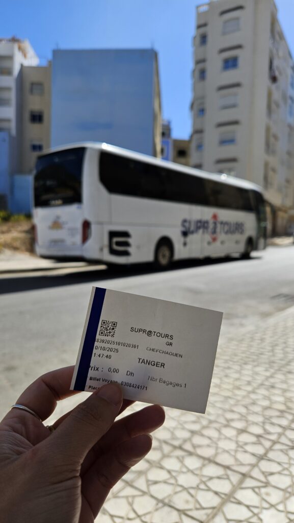 Please note: usually you need to buy an extra ticket at the bus station for your luggage if you want to place a bag or suitcase in the hold. This usually costs around 5–7 MAD (€0.50). You’ll receive a label, like at the airport, and a receipt to prove it’s your bag. There are no rules regarding weight or size — it’s about the number of items.