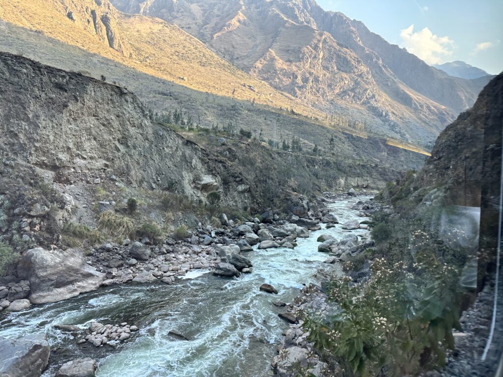 The Peru Rail line from Ollantaytambo to Aguas Calientes is truly a special experience! Many people will ride this line to get to Machu Picchu. It provides the most picturesque landscapes and entertainment along the way. Peru Rail is set up for tourists, so the cars are clean, comfortable, and modern.